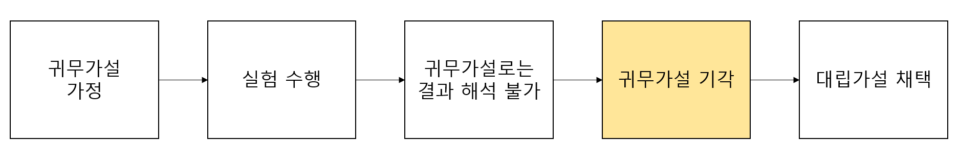 - 귀무가설: A와 B 랜딩페이지는 차이가 없다.(무의미하다, 상관관계가 없다)